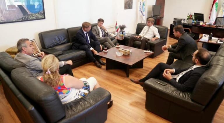 Caretaker Minister of Energy Walid Fayad met at his ministerial office with TotalEnergies top officials, including Senior Vice President of Middle East Exploration at TotalEnergies Laurent Vivier, Senior Vice President of Exploration and Production for Asia Julien Pouget, and General Manager of TotalEnergies in Lebanon Romain de La Martinière.
