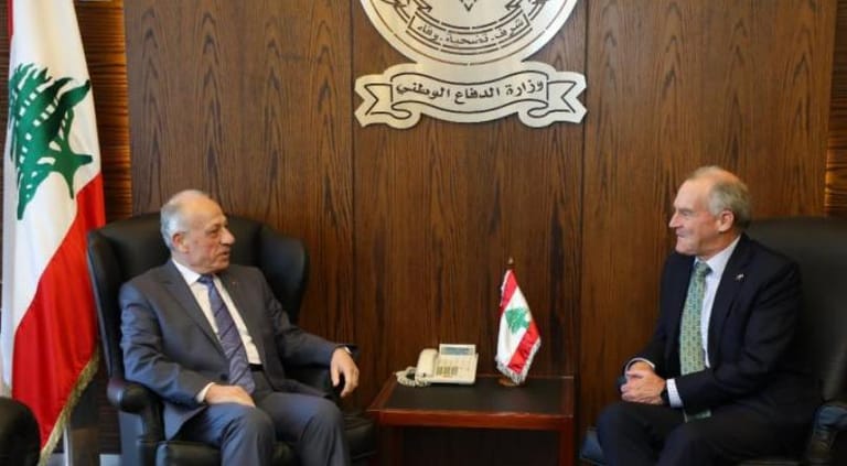 Caretaker Minister of Defense Maurice Sleem welcomed at his Yarzeh office Australian Ambassador to Lebanon Andrew Barnes, with whom he discussed the current developments in the region.