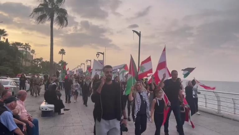 The capital Beirut witnessed a march that included more than 3,000 male and female students along with their mothers from Beirut schools, in solidarity with Palestine and Gaza.