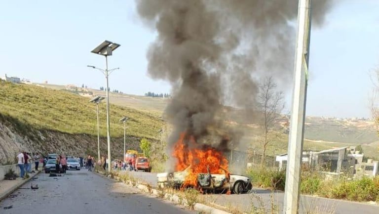 An Israeli drone strike targeted a car on the Nabatieh road, injuring several students who were on a bus passing by the area.