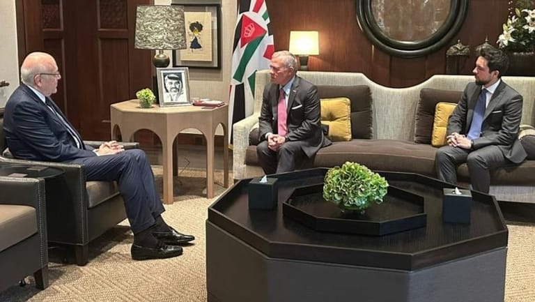 King Abdullah II of Jordan received the caretaker Prime Minister Najib Mikati today at the Al Husseiniya Palace, where they discussed the current situation in Lebanon and the Israeli aggression in the south.