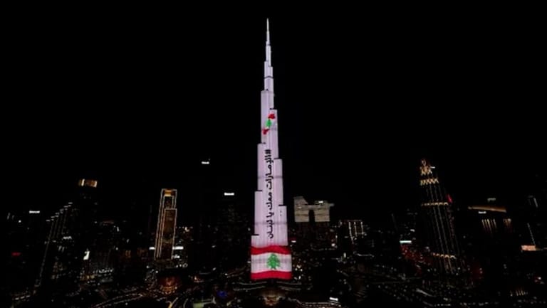 Burj Khalifa was illuminated with the Lebanese flag as part of the 'UAE Stands with Lebanon' initiative.