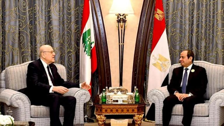 Egyptian President Abdel Fattah el-Sisi, met with Caretaker Prime Minister Najib Mikati, on the sidelines of the Extraordinary Arab-Islamic Summit held in Riyadh, Saudi Arabia.