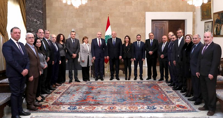The President’s remarks came during a meeting at Baabda Palace with Lebanese University President, Professor Bassam Badran, accompanied by a delegation of deans, directors, faculty members, and administrators, who extended their congratulations on his election.