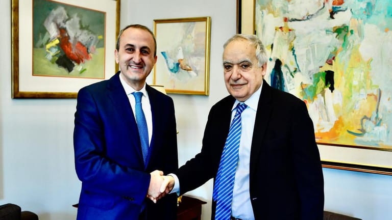 The Minister of Culture Ghassan Salameh met in his office at the National Library in Sanayeh, the representative of the International Organization of La Francophonie for the Middle East, Ambassador Levon Amirjanian, who congratulated him on his behalf and on behalf of the Secretary General of La Francophonie for assuming office at the ministry of culture.