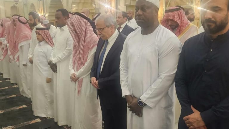 Salam performed the Fajr prayer in Saudi Arabia, attended by Grand Mufti of the Republic Sheikh Abdul Latif Derian, Saudi Foreign Minister Faisal bin Farhan, Prince Yazid bin Farhan, and Saudi Ambassador to Lebanon Walid Bukhari.