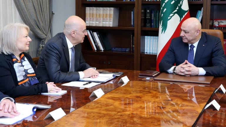 President of the Republic Joseph Aoun told Greek Defense Minister Nikos Dendias, who received him this afternoon at Baabda Palace, in the presence of Defense Minister Michel Menassa that "Lebanese-Greek relations are deeply rooted in history, and cooperation between the two countries exists in more than one field."