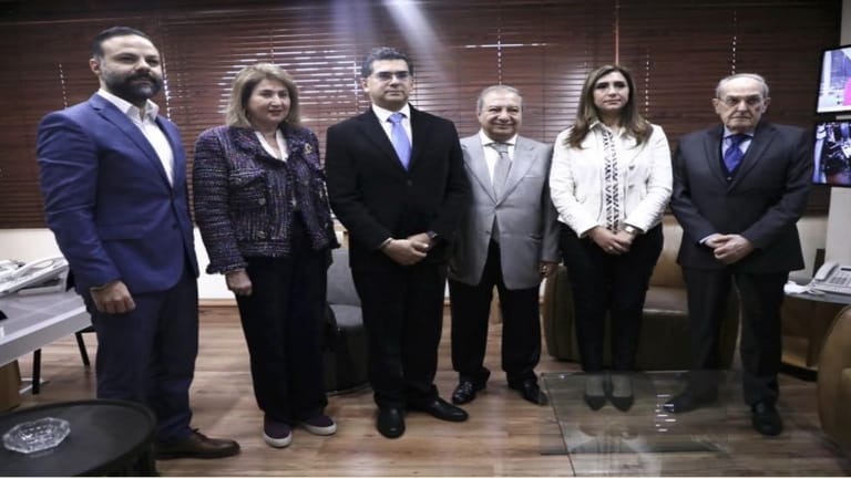 Minister of Information Paul Morcos received Press Syndicate Head Awni El Kaaki at Tele Liban headquarters. Following the meeting, El Kaaki congratulated Morcos on his appointment, praising his long-standing involvement in the media sector prior to assuming the ministerial post.