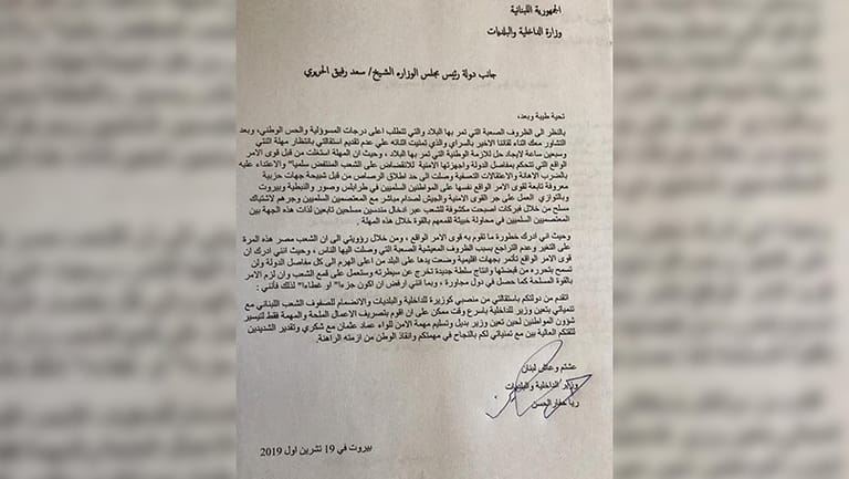 Social media users shared on Saturday an apparent image of Interior Minister Raya Hassan's resignation letter.