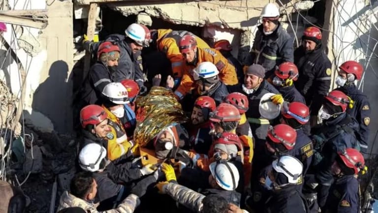 In Turkey's Adiyman province, broadcasters showed rescue workers carrying Cafer strapped on a stretcher, an oxygen mask on his face and a health worker holding an IV bag, from the site of the collapsed building to a waiting ambulance.