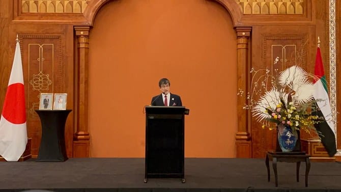 Isomata Akio, Ambassador of Japan to UAE and Dr. Mubarak Saeed Ghafan Al Jabri, Major General Staff of Assistant Undersecretary for Support and Defense Industries of the Ministry of Defense of the United Arab Emirates, signed the accord.