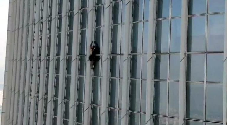 The 24-year-old man, wearing shorts, made his way up the landmark skyscraper for more than an hour as police and fire crews gathered below.