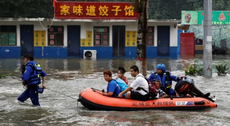 Video shared by CCTV showed several people struggling to keep their heads above water as a powerful torrent pushed them downstream and bystanders shouted from the water's edge.