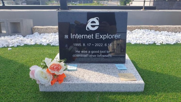 To commemorate its demise, he spent a month and 430,000 won ($330) designing and ordering a headstone with Explorer's "e" logo and the English epitaph: "He was a good tool to download other browsers."