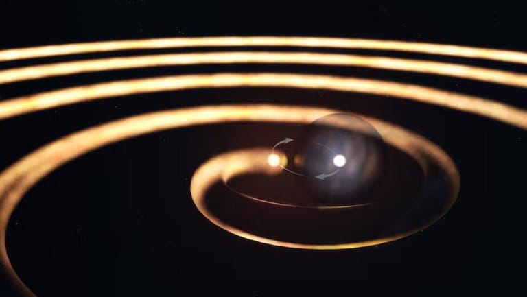 In a new paper published on Wednesday in the journal Nature, an international team of astronomers describe how the intense radiation of a binary star system is pushing dust plumes out and away from the twin stars on an eight year cycle.