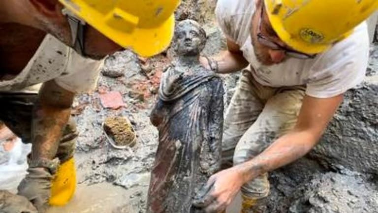 The statues were discovered in San Casciano dei Bagni, a hilltop town in the Siena province, about 160 kilometres (100 miles) north of Rome, where archaeologists have been exploring the muddy ruins of an ancient bathhouse since 2019.