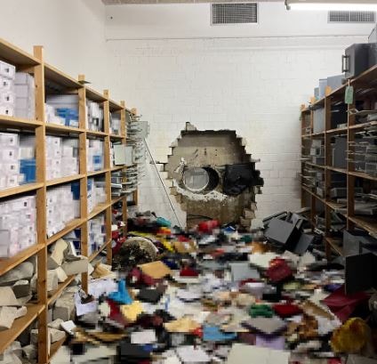Police said witnesses have reported that they saw several men on Saturday night carrying large bags in the stairwell of an adjacent parking garage.