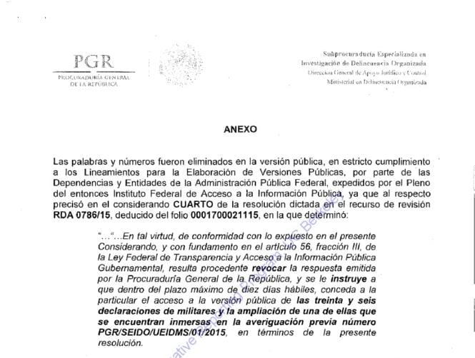 But several members of the 27th battalion told prosecutors in depositions that they were patrolling the streets of Iguala the night of the attacks and that they began tracking the students hours before the first shots were fired. The reporters obtained the depositions using Mexican transparency laws after a months-long legal battle. The attorney general's office redacted nearly all of the names of the interviewed military members.