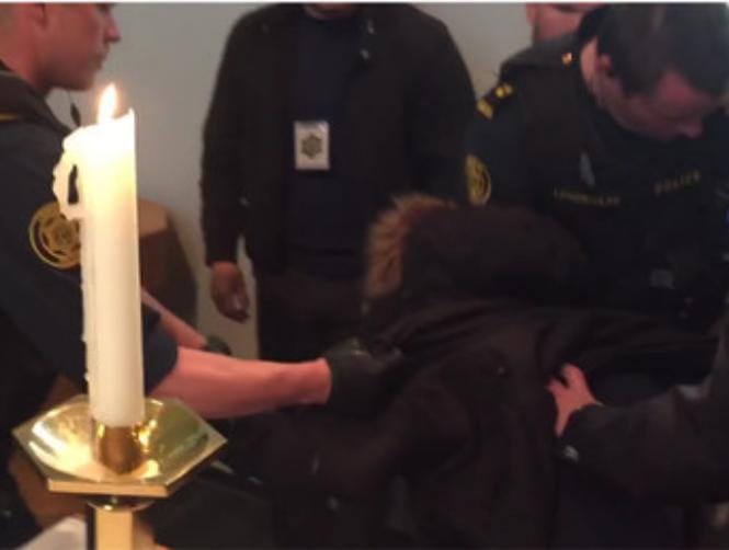 Icelandic police were captured on video dragging two asylum seekers from a church at midnight.
