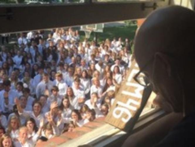 "The entire student body (400+ students plus HS faculty) drove to his house to worship with him. Our thoughts and Prayers are with him and his family..... So precious and kind."