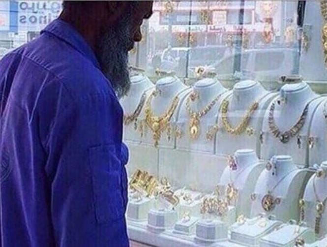 Bangladeshi cleaner Nazer al-Islam Abdul Karim, 65, was ridiculed for looking wistfully into the window of a jewelry shop in Saudi Arabia.