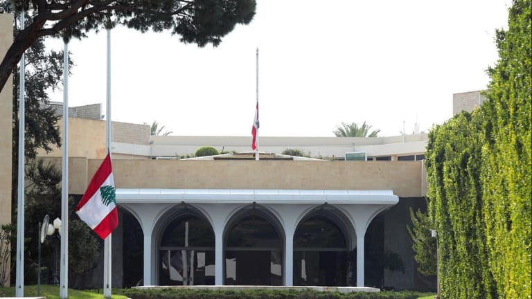 Photo: The flag at Baabda Palace is flown at half-mast in mourning for the death of Pope Francis