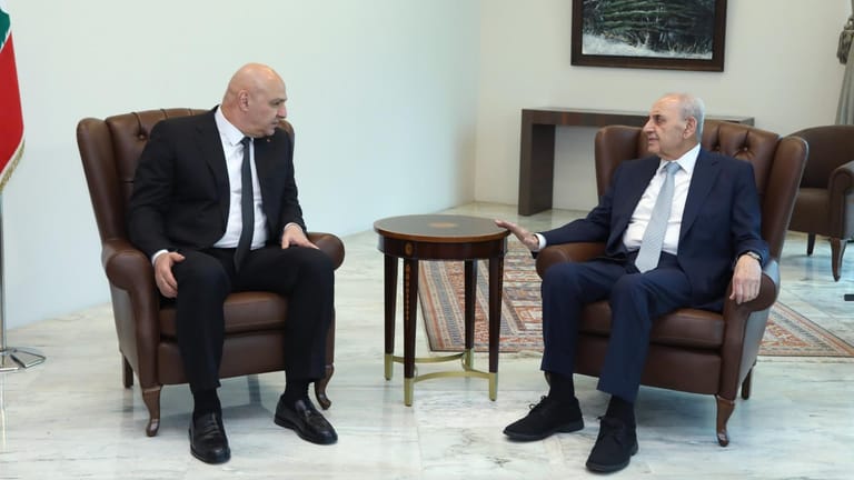 President Joseph Aoun meets with Parliament Speaker Nabih Berri at the Baabda Palace.