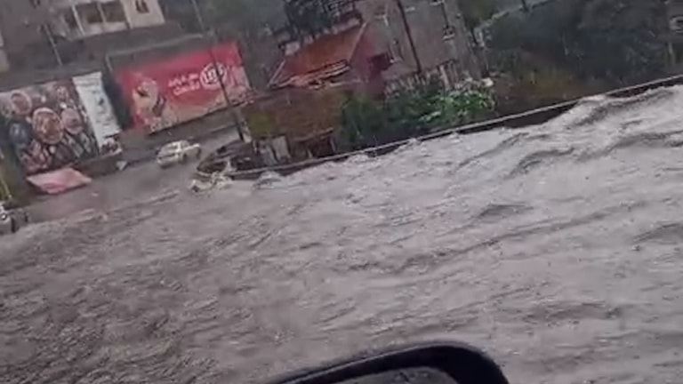 Rainfall has hit various areas across Lebanon, with footage documenting the heavy downpour on the road in Bhamdoun.