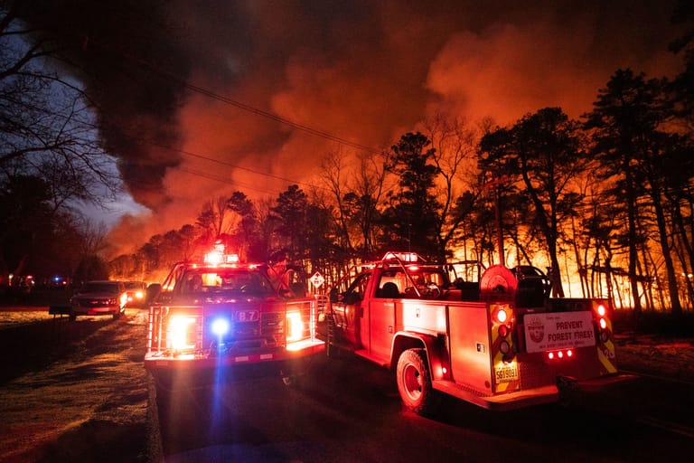 A huge fire broke out in the forests of the US state of New Jersey, causing the evacuation of some residents and the closure of a major highway.