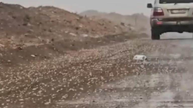 Heavy hail was reported along the Dubai-Al Ain road in the UAE, marking an unusual weather phenomenon during the height of the summer season.