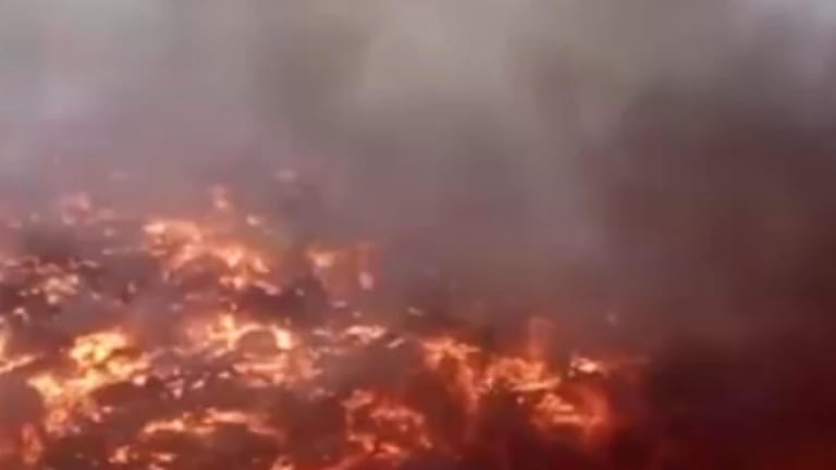 The fire broke out suddenly for unknown reasons, sending thick smoke across the area and spreading foul odors, which poses a serious environmental and health crisis for local residents.