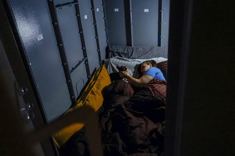 "We used to come here less often, about once a month," Slavytska said, sheltering in Akademmistechko station in western Kyiv. "That was six months ago. Now we come two or three times a week." She spent the night curled up on her pink mat with Emil by a column lining the subway tracks.