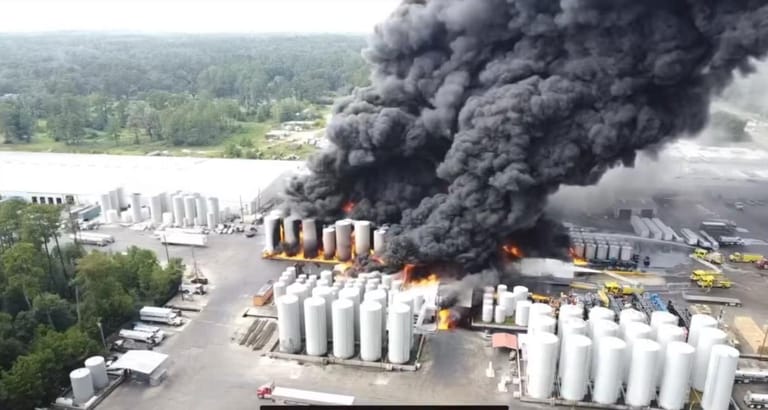 No injuries have been reported so far at the refinery, which is owned by the US lubricant manufacturer Smitty Supply.