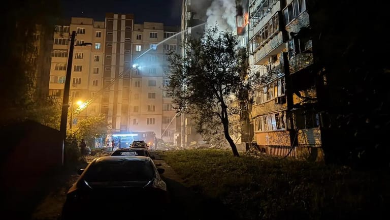 Russia launched hundreds of attack drones and missiles towards Ukrainian cities overnight on Sept. 6-7, striking multiple residential buildings in Kyiv, officials reported.