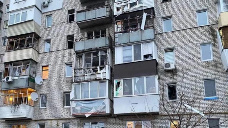 Mrs Grishko's daughter, Alina Kalcheva, says the missile fell about 100m (328ft) from the building. "The blast wave damaged my mother's balcony, windows, doors, and the interior of the apartment."