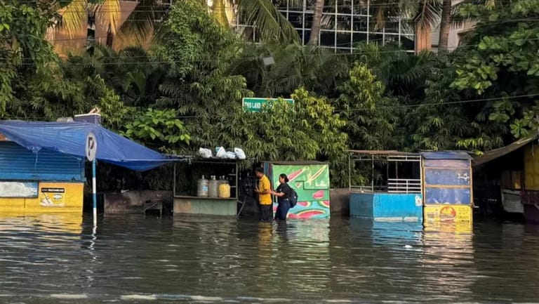 Roads were submerged under waist-deep water in some areas, stranding vehicles and forcing commuters to wade through flooded streets.