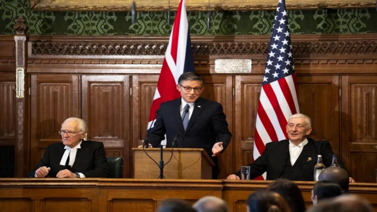 In a speech to the British Parliament, Mike Johnson said the US and the United Kingdom “have always been able to work through our differences calmly, as friends. We will continue to do that.”