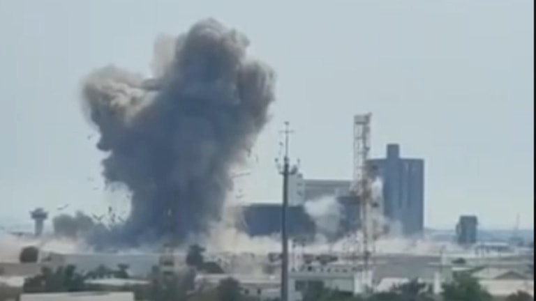 A video has documented shocking scenes of a missile striking the sea in Bahrain, causing a large explosion.