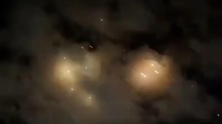 A video has circulated showing the sky over Tel Aviv during the fall of Iranian rockets and their interception by Israeli air defences.