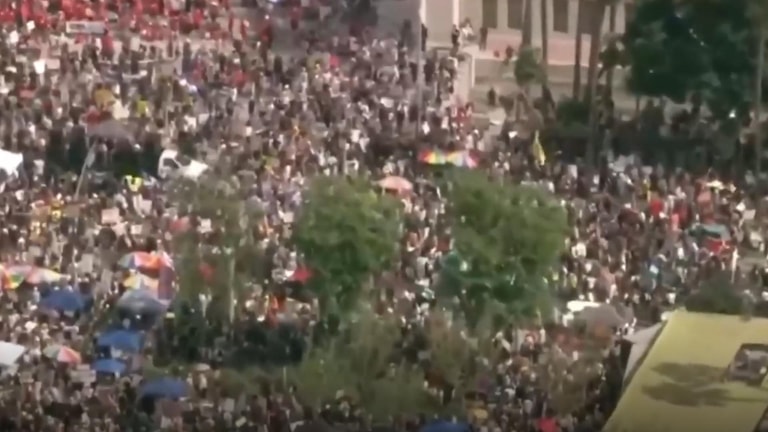 In the attached video, you can see footage from a demonstration in Los Angeles protesting Trump’s policies.