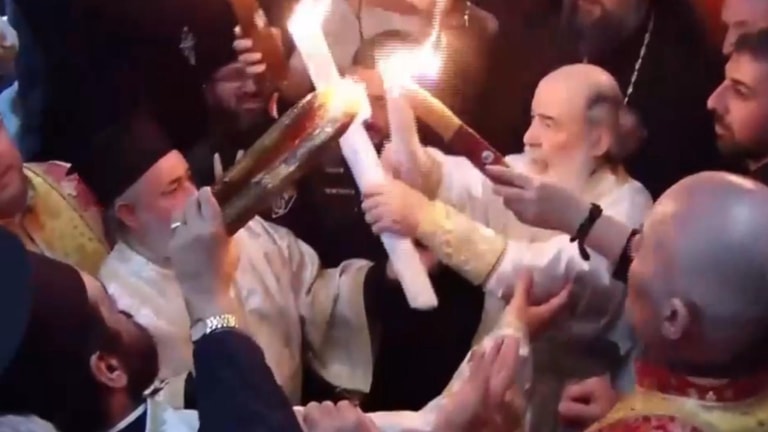You can see in the attached video the moment the Holy Light flows from the tomb of the Lord Jesus Christ in the Church of the Holy Sepulchre in Jerusalem.