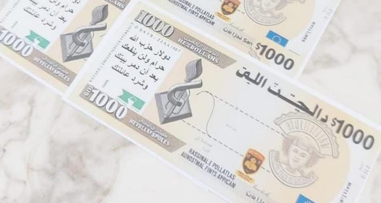 The leaflets, which were shaped like counterfeit money, contained messages against Hezbollah.
