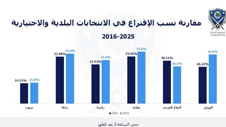 In the attached photo, you can find a comparison of voter turnout rates in the municipal and mukhtar elections between the years 2016 and 2025.