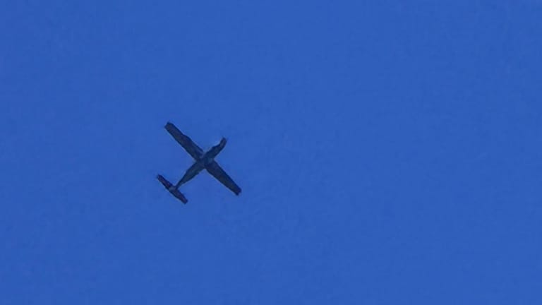 Photo: A Lebanese Army Cessna aircraft is flying at a low altitude over villages east of Baalbek and the Bekaa Valley