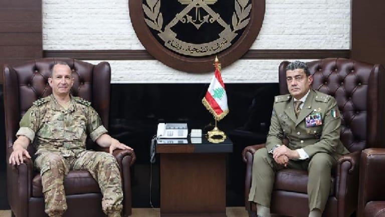 Lebanon’s Army Commander, General Rodolph Haykal, received at his Yarzeh office, the UNIFIL Force Commander, General Diodato Abagnara.