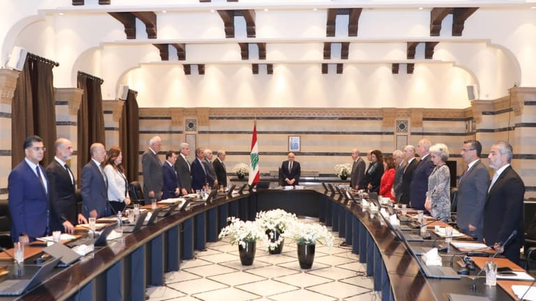 Prime Minister Nawaf Salam, is currently presiding over a Cabinet session attended by Deputy Prime Minister Tarek Mitri, and Ministers of Finance Yassin Jaber, Culture Ghassan Salameh, Defense Major General Michel Menassa, Energy and Water Joe Saddi, Trade and Economy Amer Bsat, Tourism Laura Khazen, Social Affairs Haneen Al-Sayed, the Displaced and Information Technology Affairs Kamal Shehadeh, Interior and Municipalities Brigadier General Ahmad Al-Hajjar, Justice Adel Nassar, Telecommunications Charles Hajj, Youth and Sports Nora Bayrakdarian, Education and Higher Education Rima Karami, Industry Joe Issa Al-Khoury, Administrative Development Affairs Fadi Makki, Public Works and Transport Fayez Rasamny, Agriculture Nizar Hani, and Information Paul Morcos.