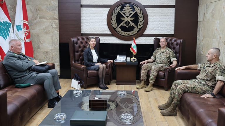 Lebanon’s Army Commander, General Rodolph Haykal, received at his Yarzeh, Austrian Ambassador to Lebanon Franziska Honsowitz- Friessnigg, accompanied by Military Attaché, Colonel Arman Lahner.