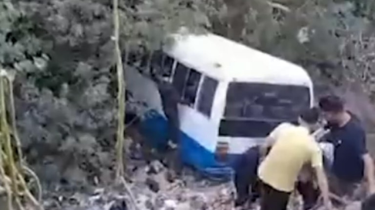 Watch: School Bus Overturns