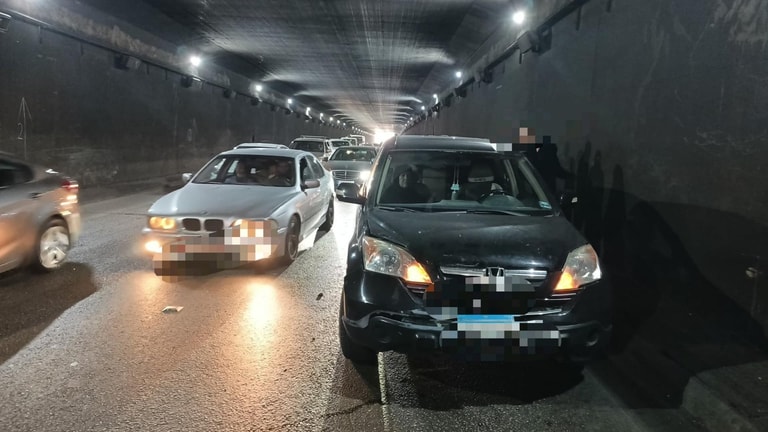 Photo: A traffic accident inside the Second Airport Tunnel heading toward Khalde caused a traffic jam and property damage; the situation is being handled by Baabda traffic patrol