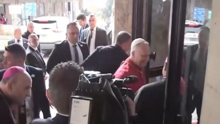 The motorcade of Pope Leo XIV has arrived at the basilica in Harissa